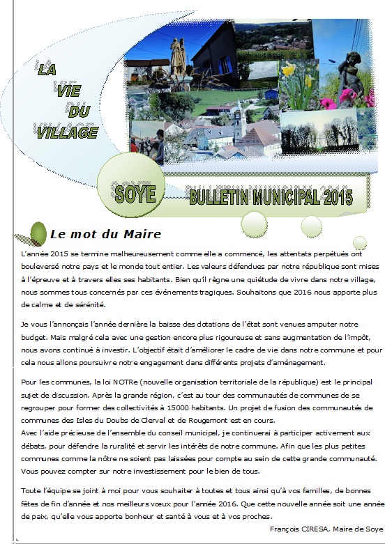 Cliquez sur ce lien pour afficher le bulletin municipal de l'année 2015 en version PDF dans son intégralité